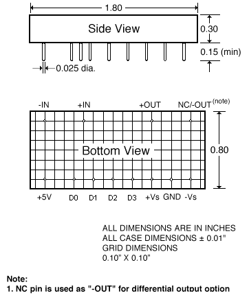 - Compact 1.8 x 0.8 x 0.3 (32 pin DIP) size minimizes board space requirements