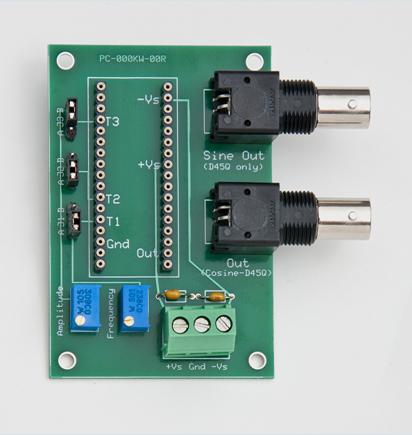 The OMA1 Oscillator Mounting Assembly eliminates the need to breadboard or hand-wire oscillator modules into individual test set-ups. OMA1’s are factory assembled 3” x 2” printed-circuit boards with socket pins for oscillator insertion, adjustment pots for frequency and amplitude, screw terminal connections for power, and either screw terminal connections or BNC connectors for signal outputs. The OMA1 operates with any of the D45, DX45, or D45Q series oscillator modules.