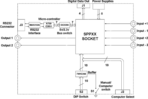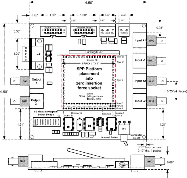 SPPDB-01 boards may be purchased individually or as part of the SPPDS-01 development suite to provide a convenient way to communicate with, design and configure SPP-01 signal processing platform solutions. Programs may be loaded & stored via an RS-232 interface. BNC signal I/O ports, power supply connection blocks and easy access to stored programs using a manual or computer select port, make set-up and utilization of SPP Series of platform products a breeze. SPP-01 Series of products shorten the engineering product development cycle while allowing the user to design and introduce new products and solutions in the shortest possible time.