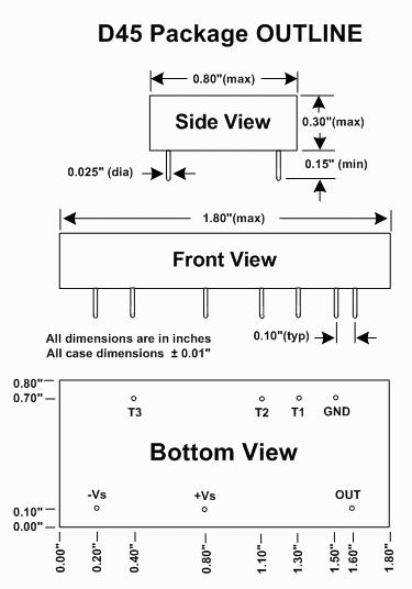 Voltage Programmable Amplitude: The output amplitude of the D45 can be voltage controlled by applying dc programming voltage VT3 to Pin T3. The output response is found from Equation 2, below: