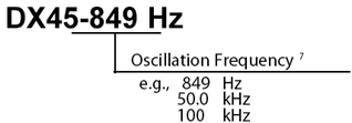 The output signal frequency of each DX45 Series sinewave oscillator is factory calibrated to within ±1% of the user-specified value. Independent of frequency setting, the output amplitude is preset to 20V p-p.