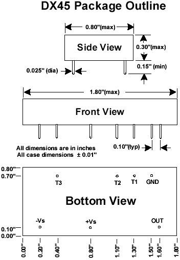 Voltage Programmable Amplitude: The output amplitude of the D45 can be voltage controlled by applying dc programming voltage VT3 to Pin T3. The output response is found from Equation 2, below: