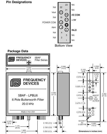 The 5BAF Series are differential-input low-pass and high-pass filters that are pin-out and package compatible with industry-standard 5B Series signal conditioning modules.Each filter comes factory tuned to user specified corner or center frequency